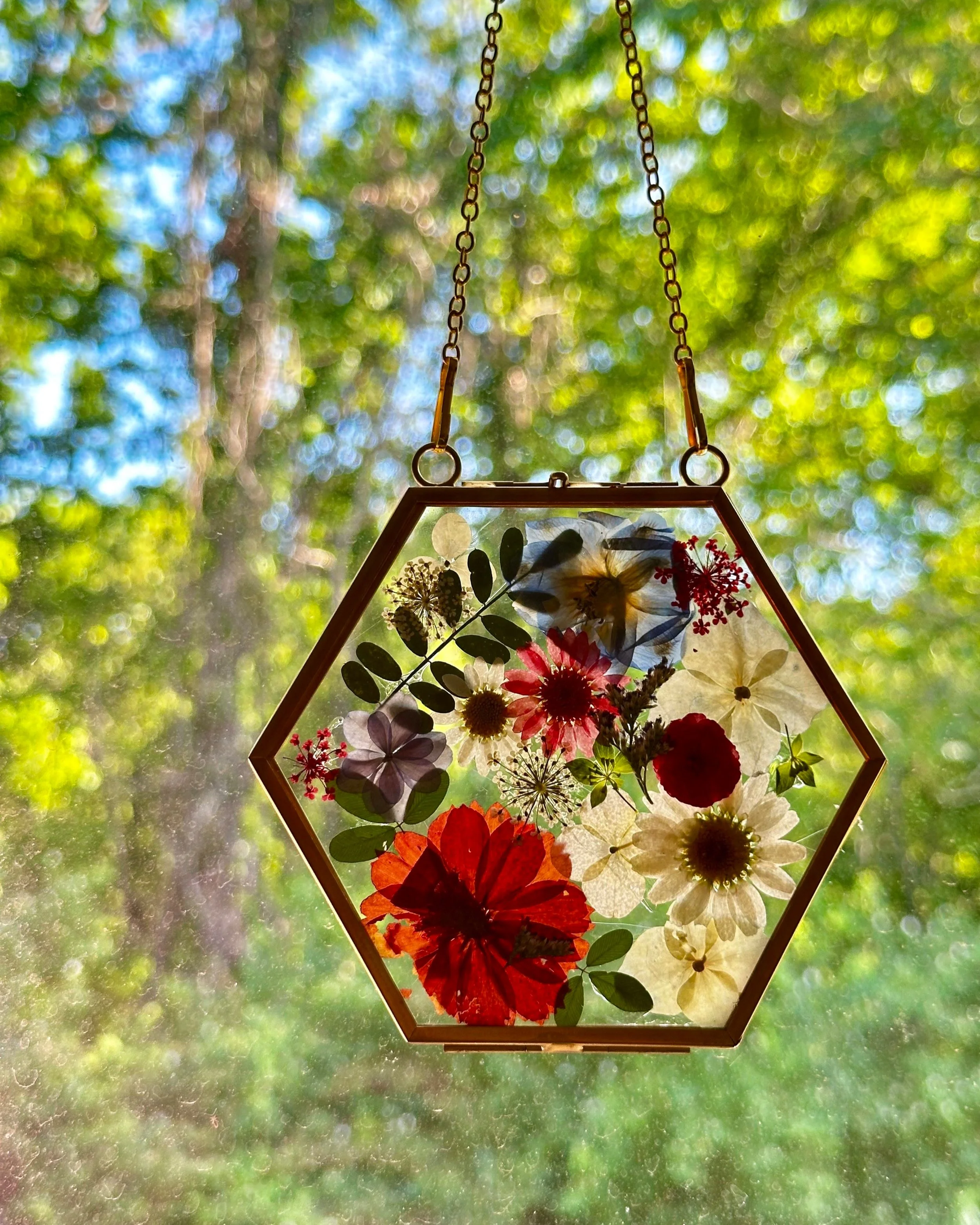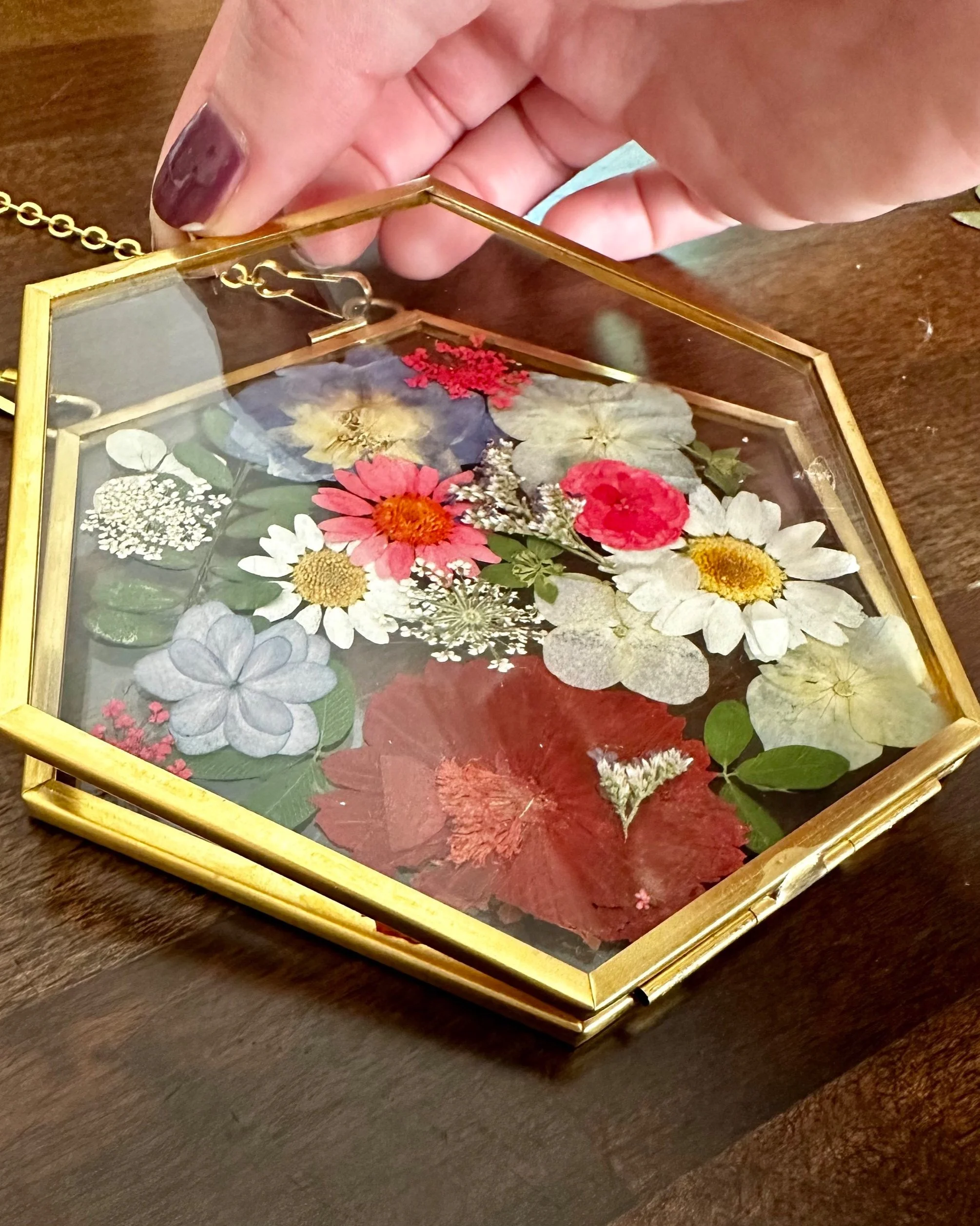 After all your flowers are glued down, just close the frame and it’s ready to hang!