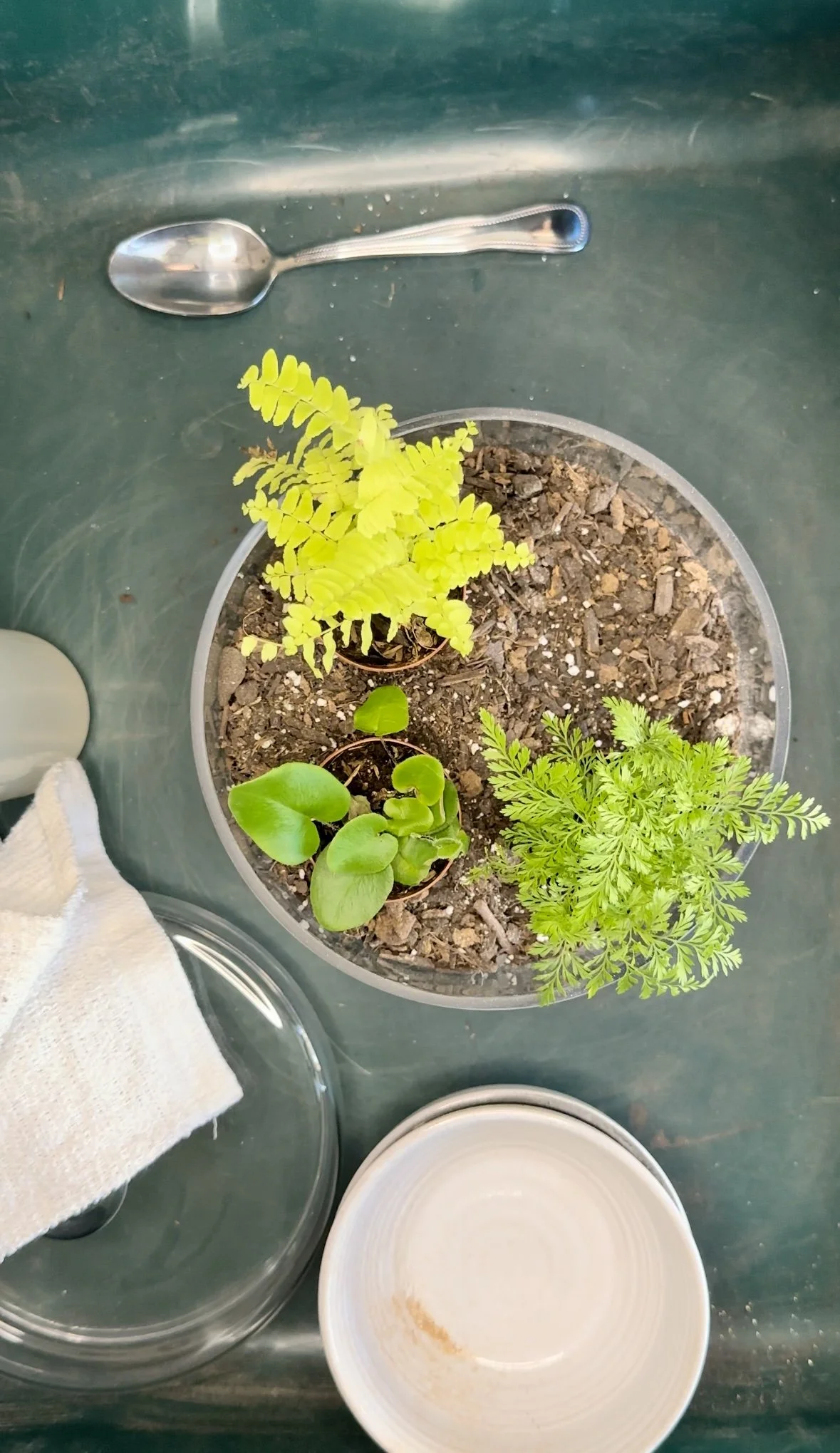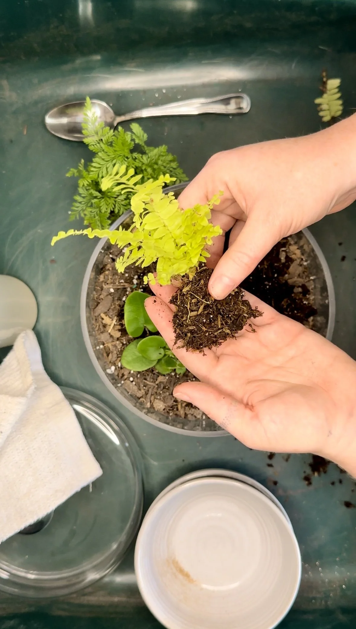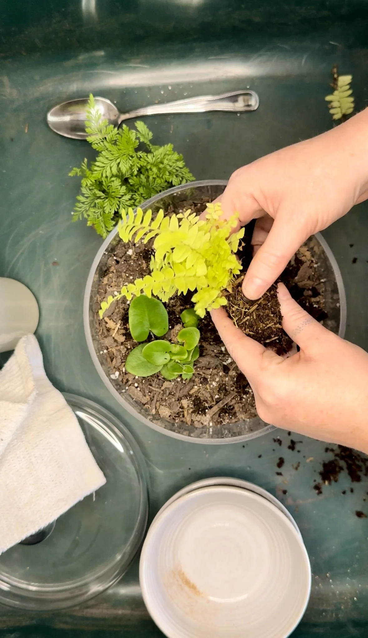 Repeat for additional plants. As your terrarium fills up, you can use a spoon to move the soil around to prevent disrupting your newly placed plants, if needed.
