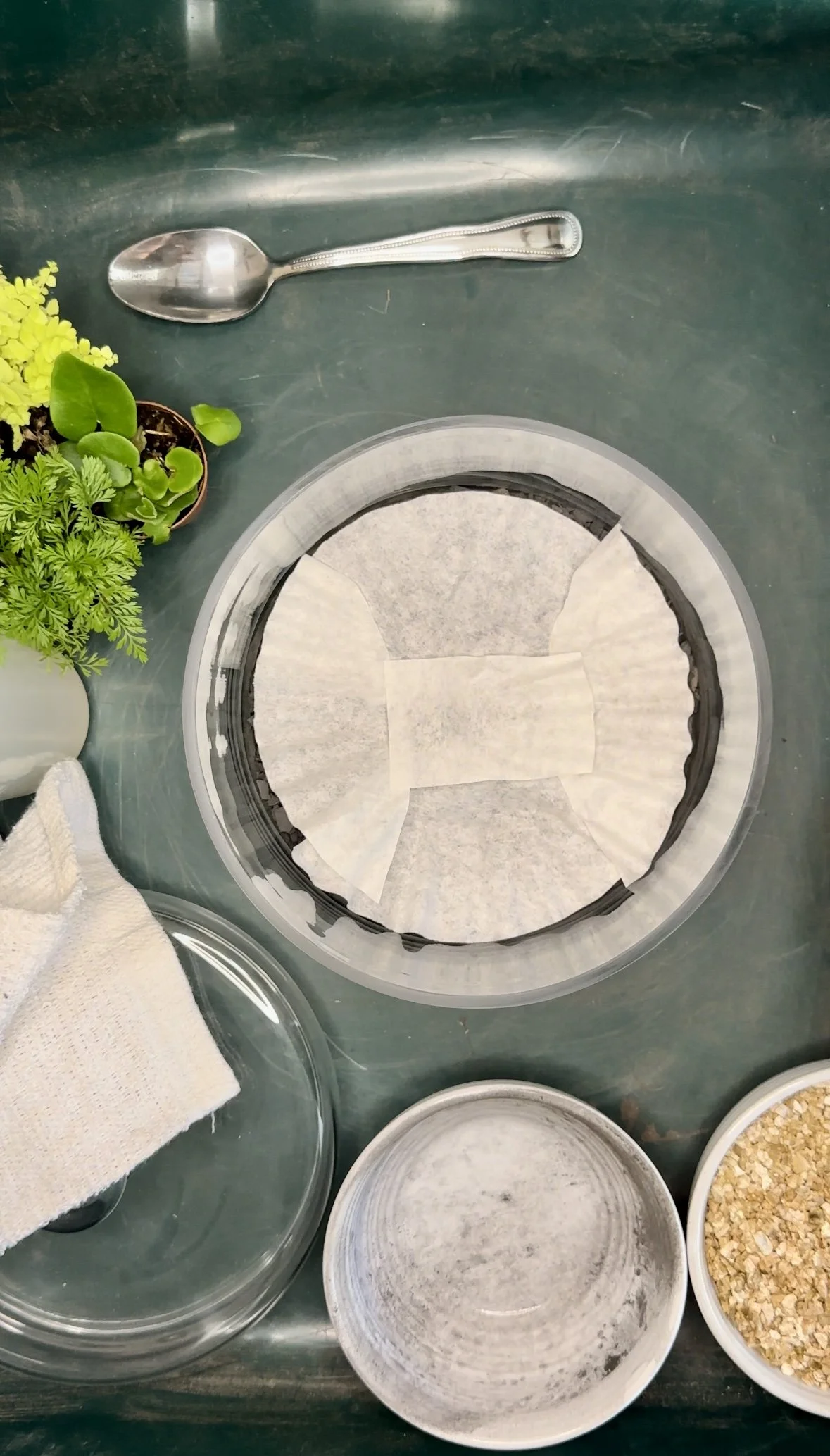 Go ahead and trim your coffee filter to line between the layers. I fold mine in half a few times to prevent having to cut all the way around it. I trim it so it fits just inside the edges of my container. You can always do this during that step, but I find it useful to do it before hand. If your container is larger than the diameter of a single coffee filter, feel free to use multiple and find the configuration that works best.