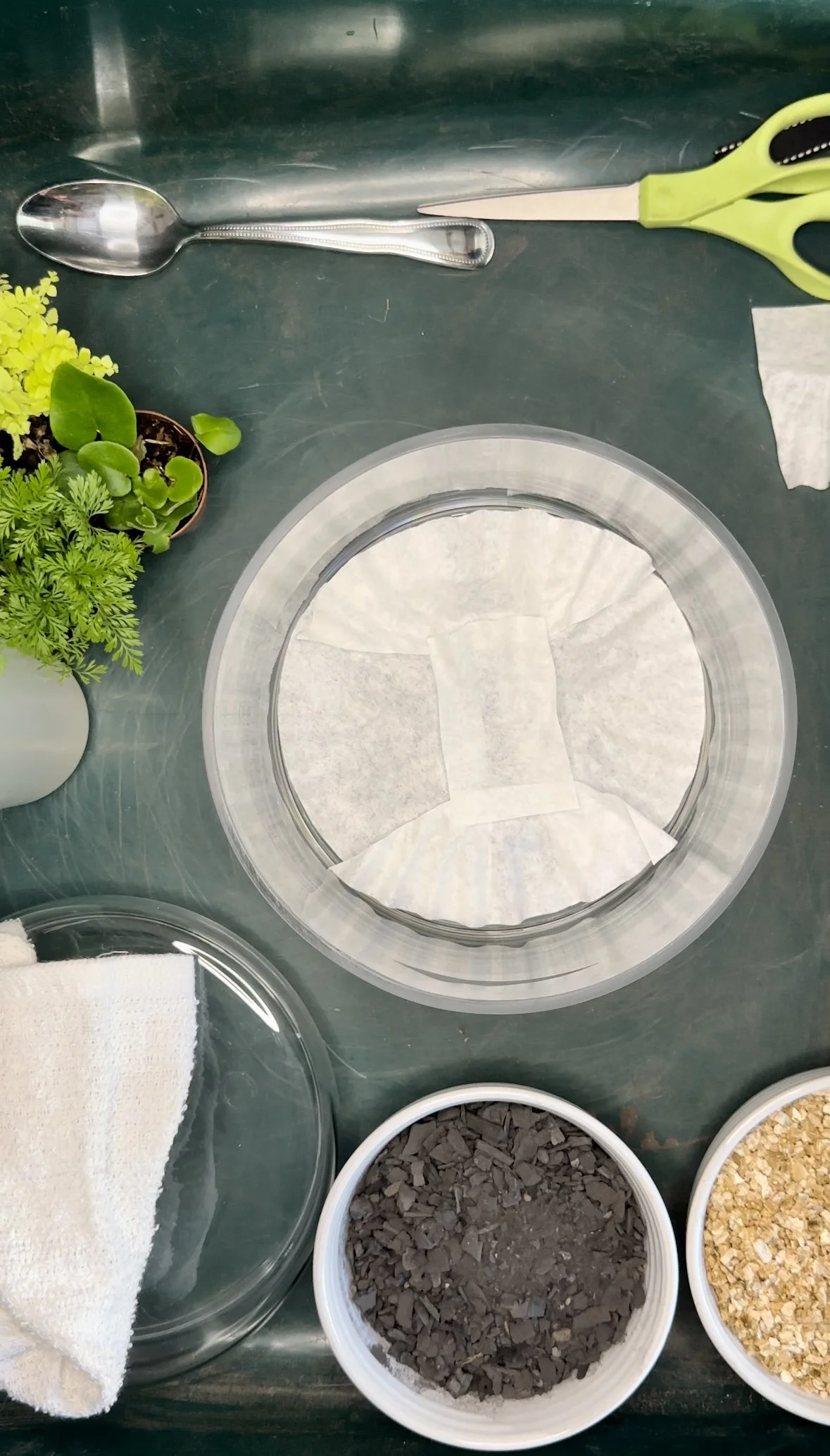 A coffee filter is something most people have around their house and it acts as the barrier between your layers of charcoal and vermiculite. By putting this layer in, you get a more defined line between your layers. Once it gets wet, it basically disappears so you won’t even notice it.