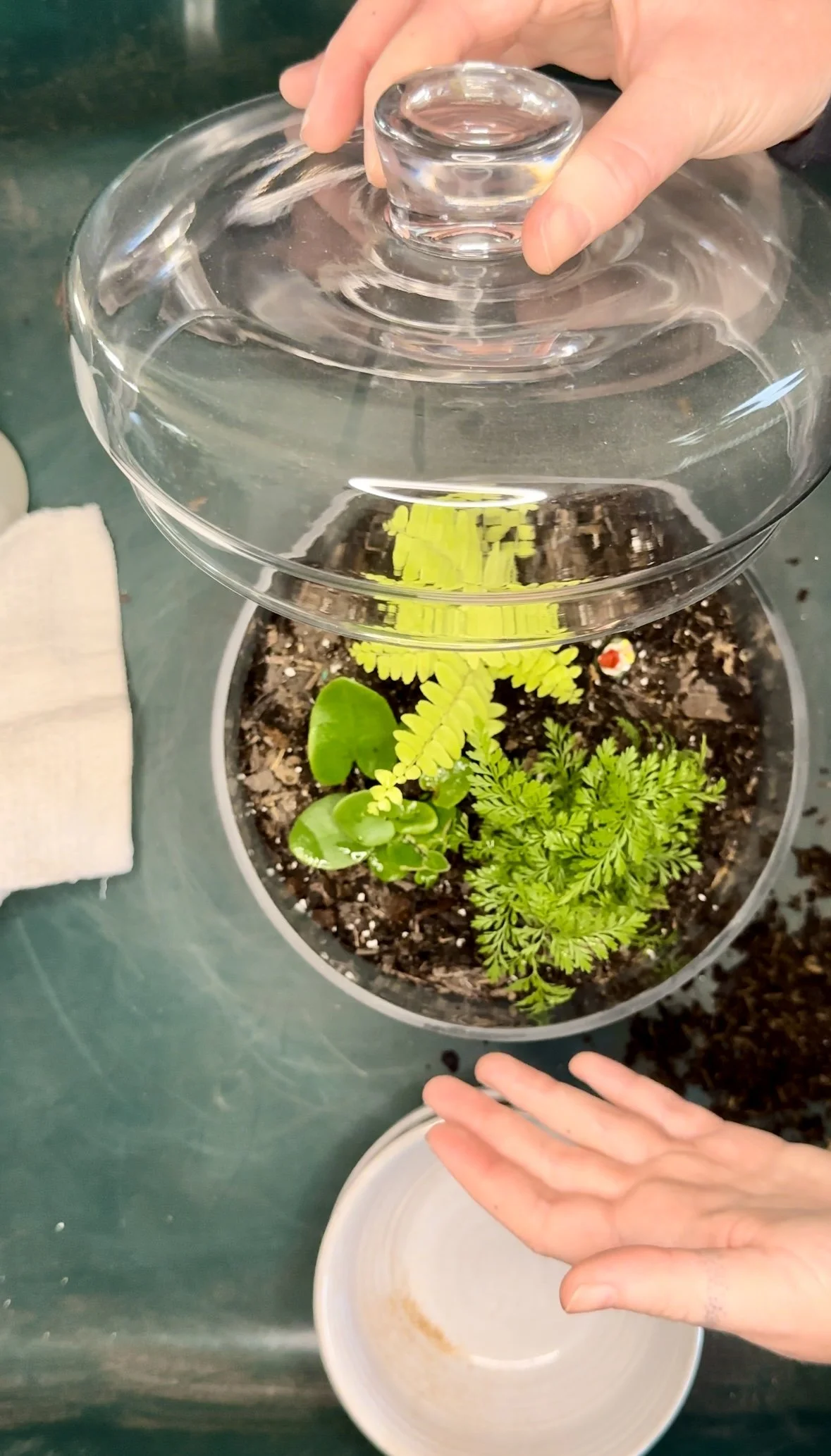 You’re done! Return your lid to the top of the container and set the finished terrarium in a location that gets indirect or filtered light.