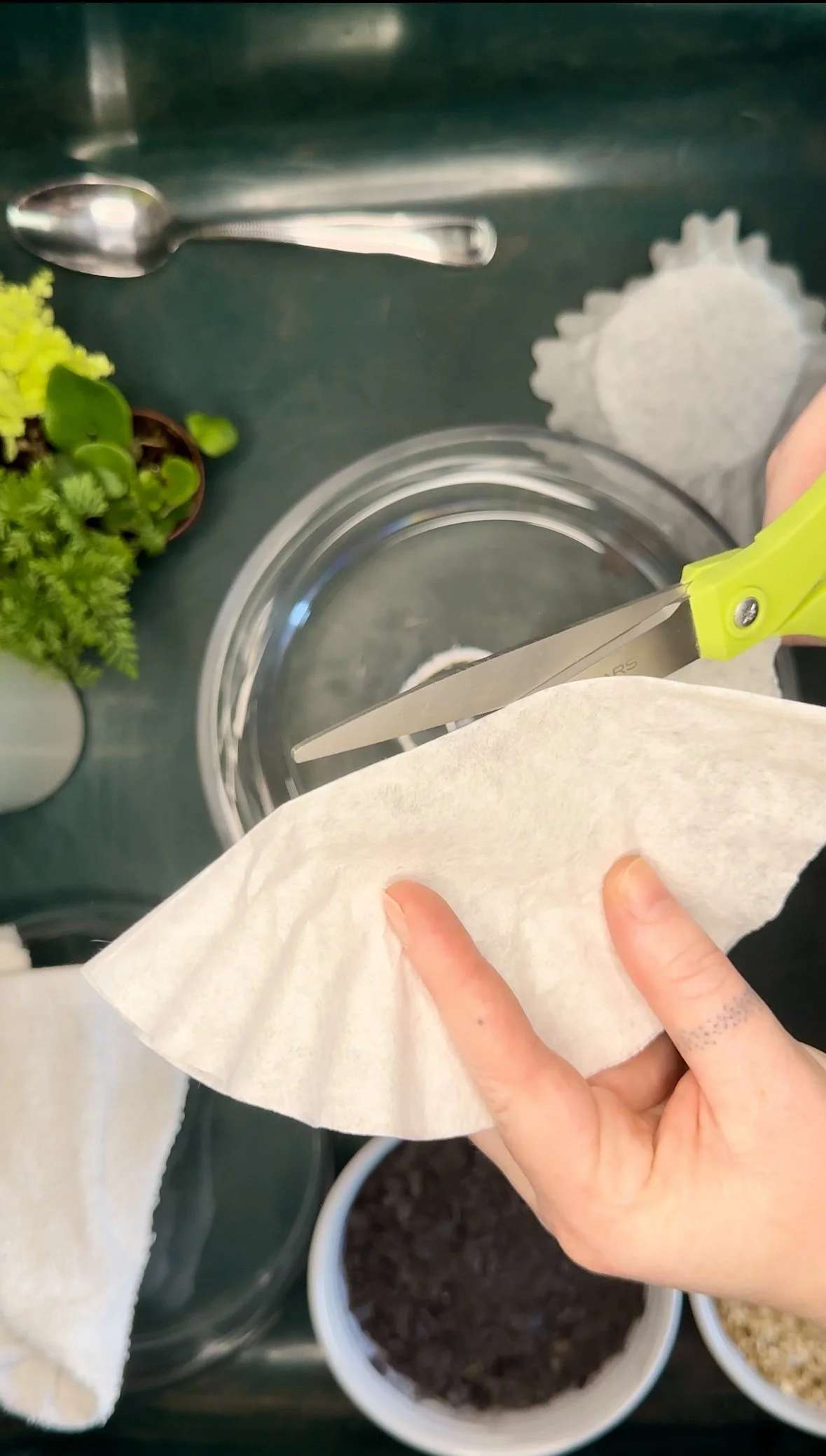 Next, I lay my coffee filter across the top of the charcoal. Sometimes it moves when adding the next layer, but don’t worry about it showing on the edges because once it gets wet, it goes pretty transparent.