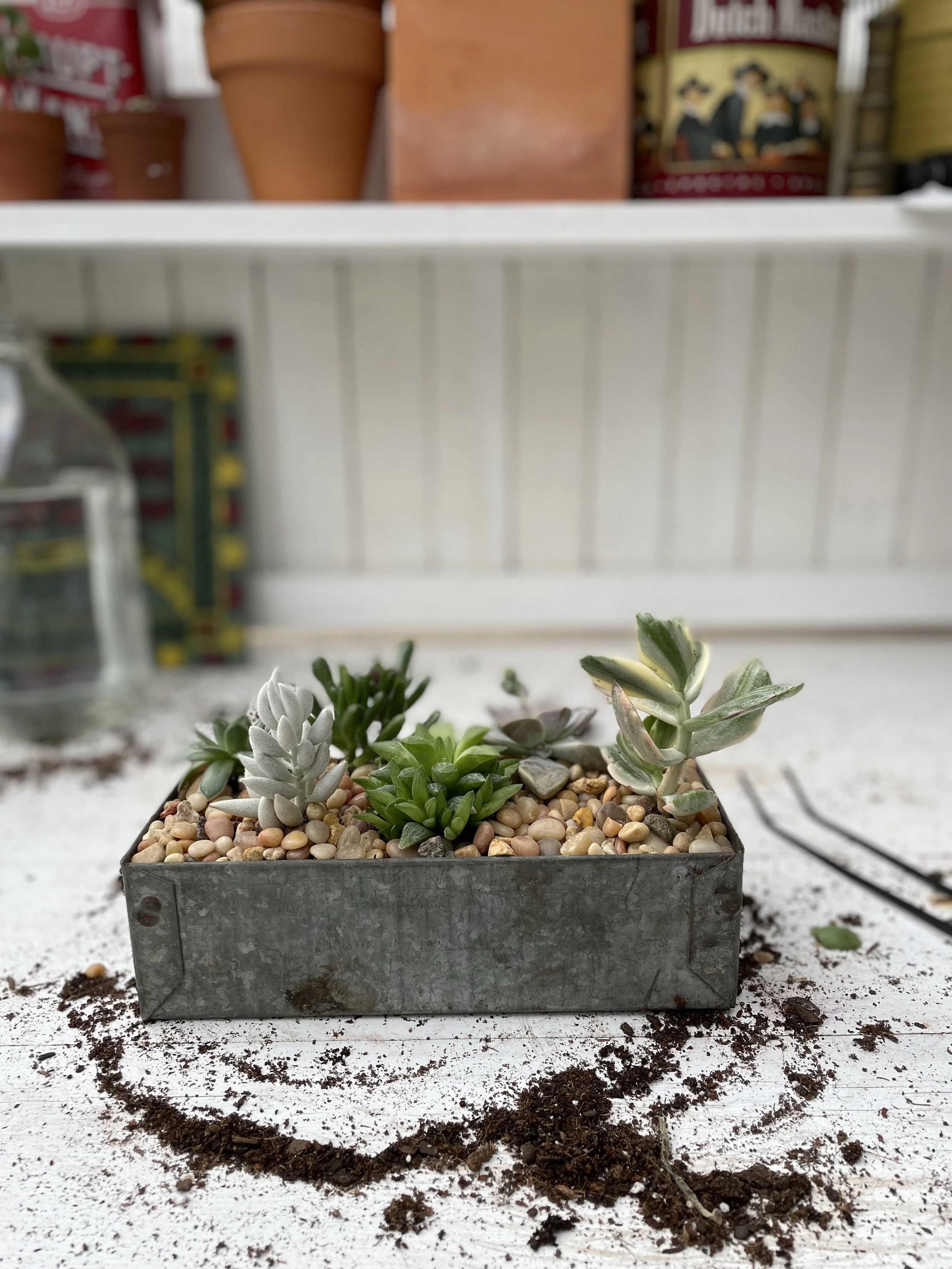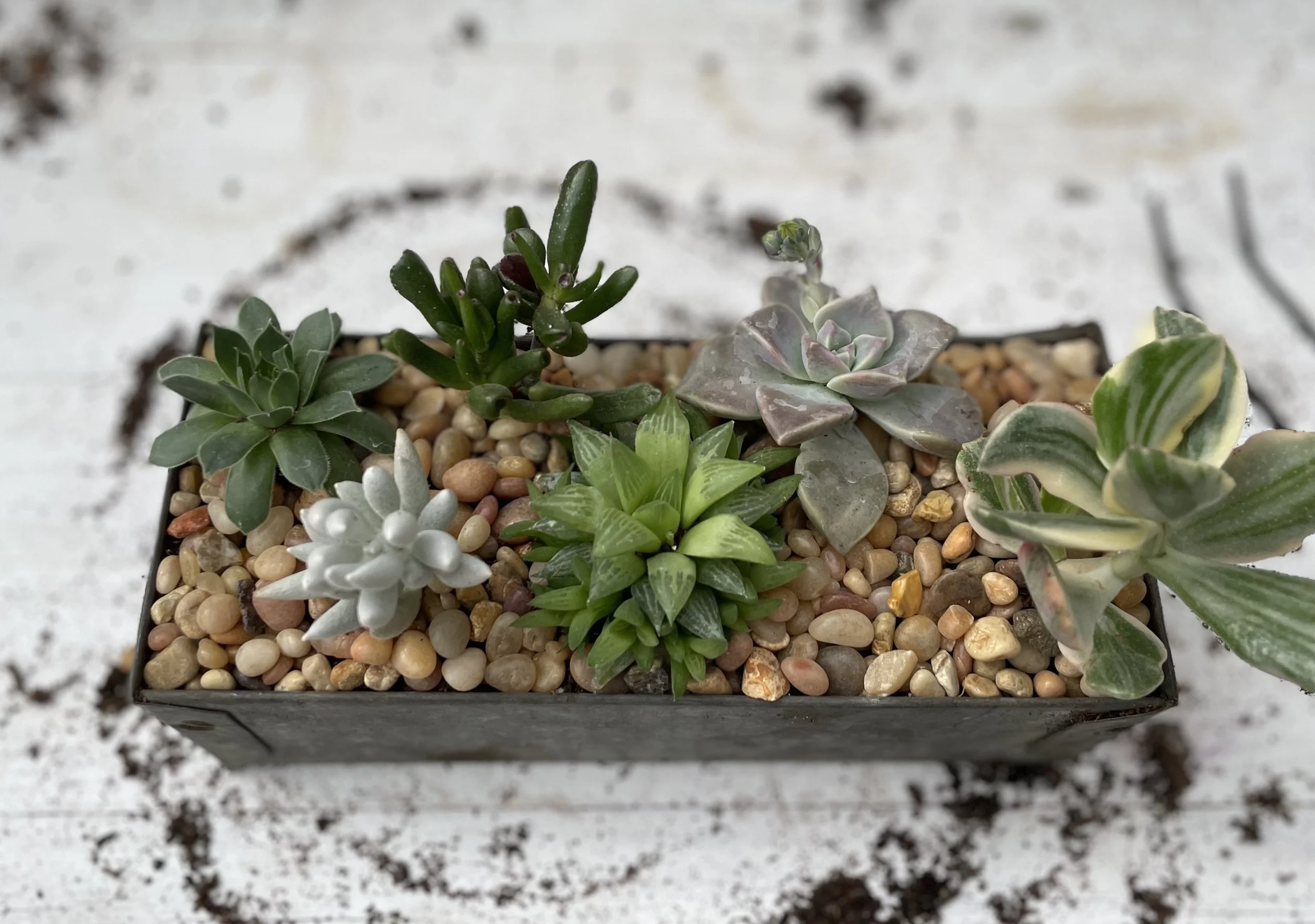 Succulents are a “plant it and forget it” type of plant. They thrive on being left alone making it great for all skill levels. This session includes a customized soil blend, drainage substrate, 3 live succulents, and a choice of soil cover. Leave it simple, or add some decorations for fun!